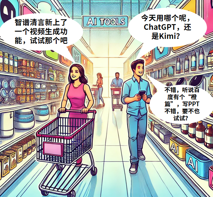 例如,ChatGPT的核心功能是对话生成,它的竞争对手文心一言或Kimi也给予类似的服务。用户无需在某个平台上“安家”,他们只是在需要某种功能时“借用”一下这个工具。使用ChatGPT写完一篇文章,你可能马上转到Midjourney生成一张配图。