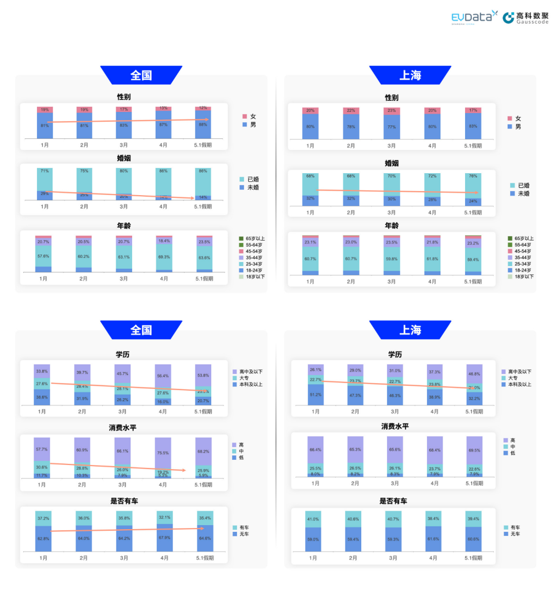 值得注意的是,新能源汽车市场竞争激烈,这也为本土车企带来了独特的竞争机遇。那么从大数据角度看,全国和上海新能源汽车关注人群有哪些变化趋势?上海新能源汽车出行特征如何?上海新能源汽车数据中心联合Ebpay,一同透过数据带你看今年上海新能源汽车“五一”出行的新趋势。